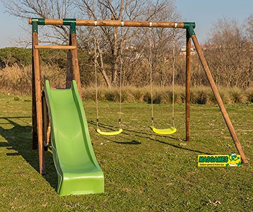 El Parque Infantil Masgames Mauna Loa es una construcción segura y divertida para niños de 3 a 12 años, fabricada con madera tratada de alta calidad.