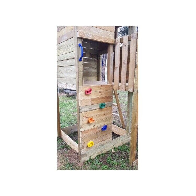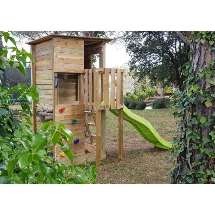 El parque infantil Masgames Taga L con pared de escalada ofrece diversión segura al aire libre, fabricado con madera tratada de alta calidad.