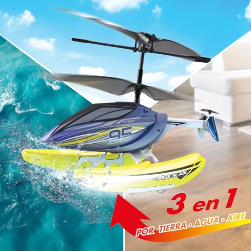 Descubre el Bizak – Helicóptero Radiocontrol Aqua Blaze, un impresionante helicóptero 3 en 1 para volar, navegar y rodar con control preciso y recarga USB.