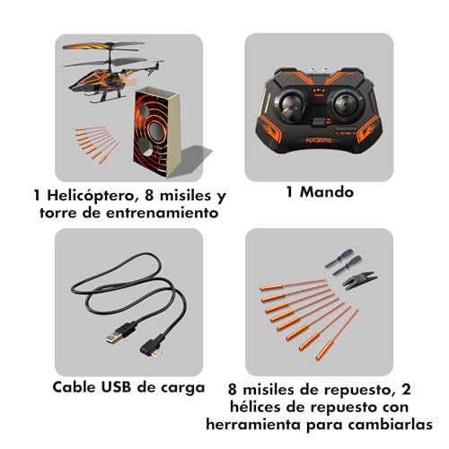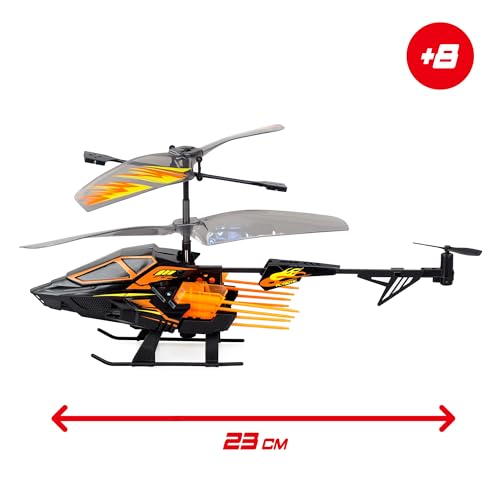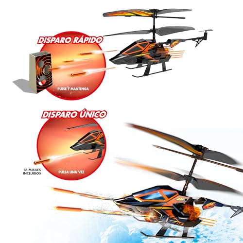 El Helicóptero Radiocontrol Hover Blast de Bizak ofrece control preciso y disparo de misiles para batallas aéreas. Incluye 1 helicóptero, 1 mando, 16 misiles, 1 diana y más.