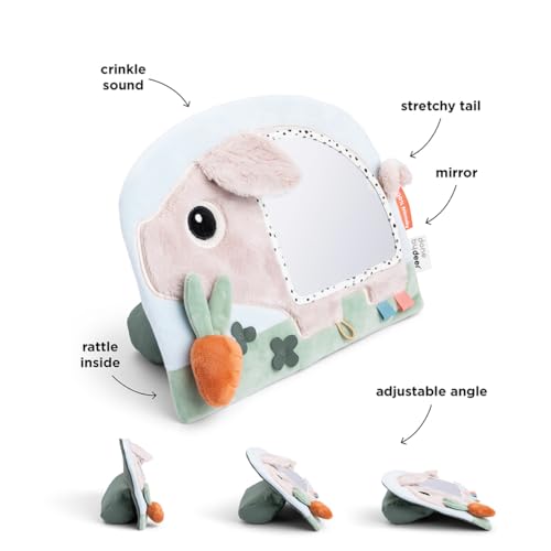 Espejo de actividad Done by Deer con elementos sensoriales para estimular el desarrollo del bebé. Ideal para tiempo de barriguita.