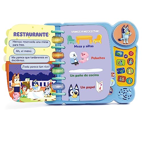 Libro interactivo de Bluey con 14 páginas, voces originales y 4 modos de juego para aprendizaje y diversión.