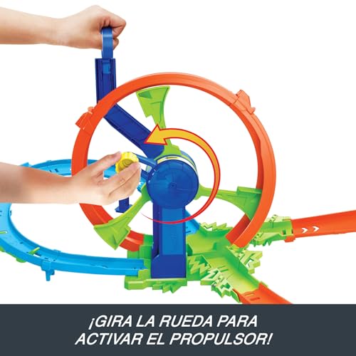 La pista Launch and Loop de Hot Wheels ofrece adrenalina y diversión con su diseño en forma de 8, impulsor automático y zona de choques. Ideal para los amantes de las carreras.