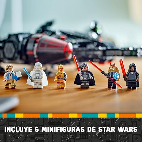 Construye el Halcón Oscuro de LEGO Star Wars y descubre un mundo de aventuras intergalácticas con 6 minifiguras exclusivas y un interior detallado para un juego envolvente.