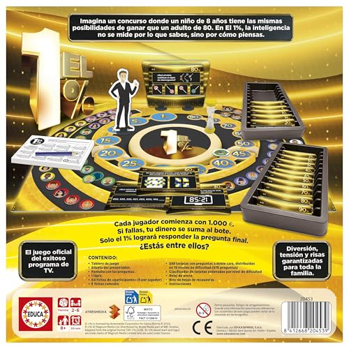 El Juego de Mesa EL 1% de EDUCA desafía a los jugadores con preguntas que solo el 1% de la población podría responder. Ideal para desarrollar habilidades mentales y disfrutar en grupo.