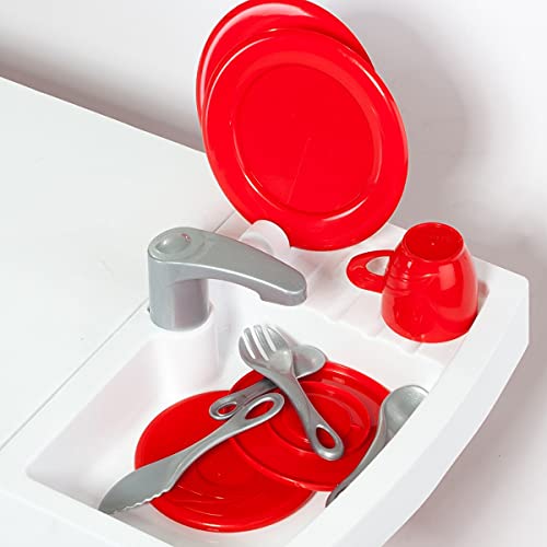 La cocina incluye 13 accesorios que varían desde utensilios de cocina hasta alimentos de juguete, permitiendo una experiencia de juego completa y variada.