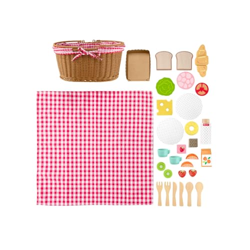 Fisher-Price – Juego de cesta de pícnic de madera con comida Fisher-Price.