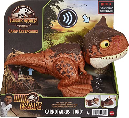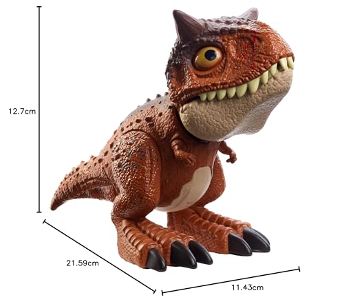Jurassic World – Jurassic World Bebé Carnotaurus mordedor Dinosaurio articulado con movimientos y sonidos.