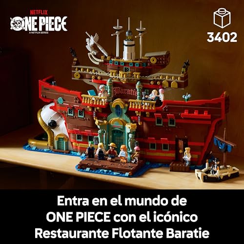 Este set de LEGO One Piece es perfecto para los amantes de la construcción y los seguidores de la serie. Con una detallada representación del famoso Restaurante Flotante Baratie, puedes: