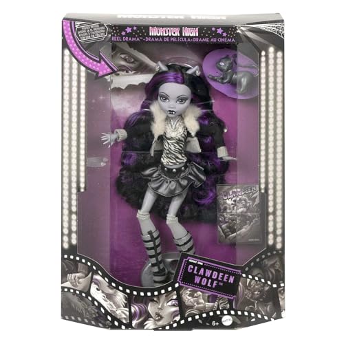 La muñeca Clawdeen Wolf de Monster High, edición Drama de película, ofrece un homenaje a los clásicos del terror con un diseño articulado y accesorios únicos.