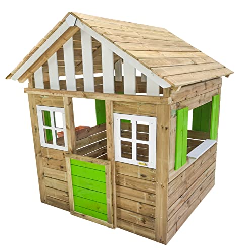 La Casita MASGAMES Lollipop Verde XL de Madera es un espacio seguro y divertido para niños mayores de 3 años, con diseño resistente a la intemperie y fácil montaje.