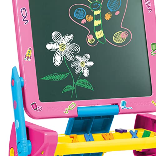 La Pizarra Pupitre con Taburete Moltó es un práctico dos en uno: pizarra para dibujar y pupitre para estudiar, todo en un diseño colorido y estable.