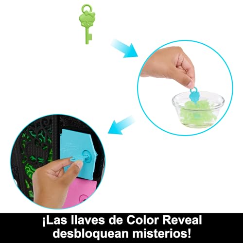 La Muñeca Ghoulia de Monster High Skulltimate Secrets Serie 3 ofrece más de 19 sorpresas, tecnología Color Reveal y un armario en forma de ataúd. Perfecta para el juego y la colección.