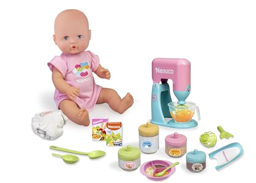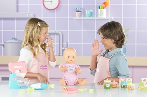 Nenuco – ¿Qué Comemos Hoy? es un set interactivo que incluye una muñeca de 42 cm y accesorios para crear deliciosas papillas, estimulando la creatividad y aprendizaje de los niños.