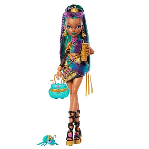 Descubre la elegancia de Nefera de Nile, la muñeca de Monster High que combina historia egipcia con estilo moderno. Incluye 7 accesorios y un escarabajo egipcio.