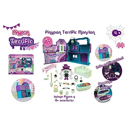 La Terrific Mansion de Pinypon ofrece un mundo de magia y sorpresas con su sarcófago DJ, lámpara de discoteca, y más, en un diseño portátil.