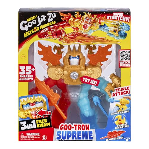 La Figura Gootron Supremo de Goo Jit Zu ofrece 3 ataques y 35 efectos de luz y sonido. Con 3 rellenos distintos y un botón que cambia su cara, es la elección perfecta para un juego interactivo y emocionante.