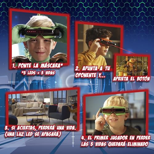 Descubre la emoción de la batalla con Bizak Lasershoot. Incluye dos máscaras y sistema de visión láser para una experiencia de combate única. Ideal para niños y adultos.
