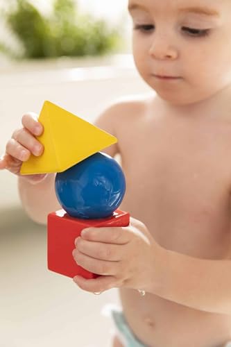 Mordedor Oli&Carol de caucho natural con figuras geométricas Bauhaus. Ideal para desarrollar la motricidad y creatividad de los más pequeños.