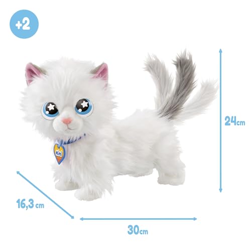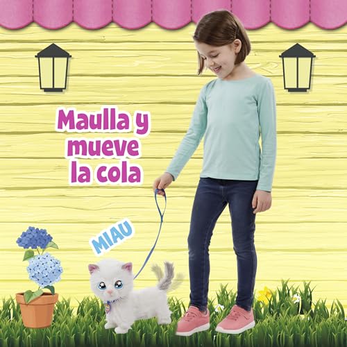 Animagic – Mimi mimitos es una adorable gatita interactiva blanca que maúlla y mueve su cola al ser acariciada. Perfecta para niños, esta compañera de juego promueve la empatía y el cuidado responsable.