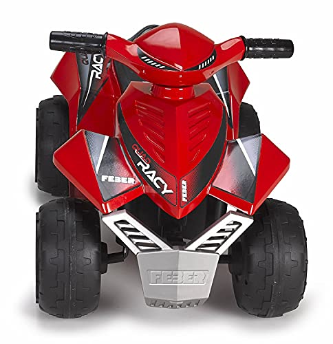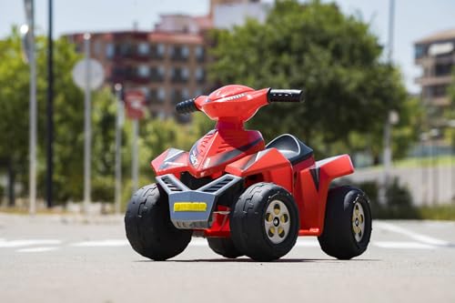 El Quad Racy Rojo Feber ofrece diversión segura para los más pequeños, con marcha hacia adelante y velocidad máxima de 2 km/h.
