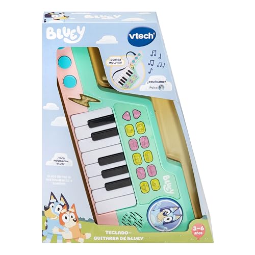 El VTech – Piano guitarra Bluey Vtech ofrece una experiencia musical divertida con sonidos y melodías de Bluey. Perfecto para pequeños músicos.