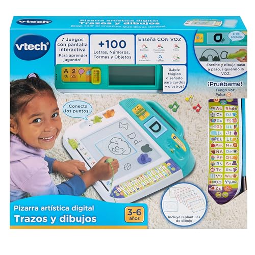 La Pizarra Artística Digital VTech es ideal para niños, con funciones de escritura y dibujo guiadas por voz, pantalla LCD, lápiz interactivo y varios juegos educativos.