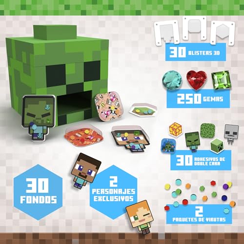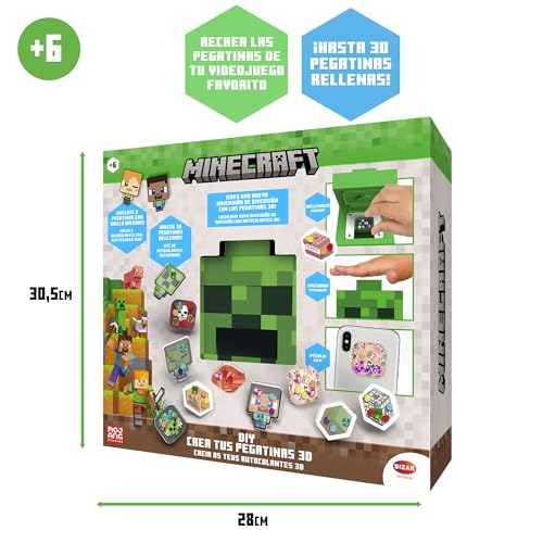 Descubre el mundo de Minecraft con el kit Bizak para crear tus propias pegatinas 3D. Fácil de usar y personalizar.