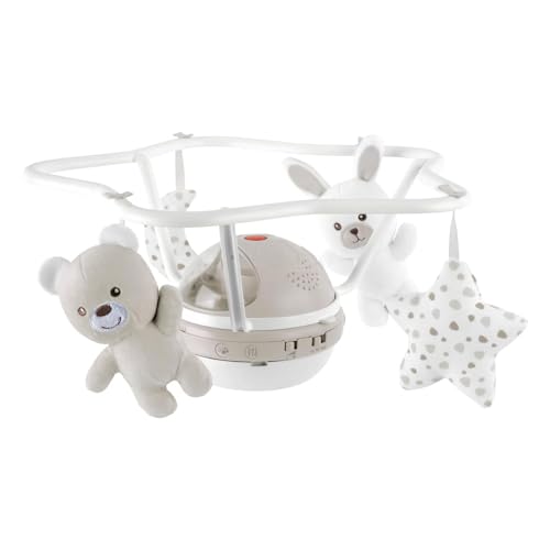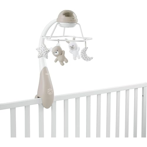 Descubre el móvil proyector Arcoiris Beige de Chicco, un dispositivo 3 en 1 que evoluciona con tu bebé, ofreciendo melodías y proyecciones para un sueño sereno.