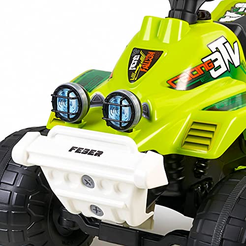 El Quad Falcon 6V de Feber es un quad eléctrico diseñado para niños de 3 a 7 años, con marcha hacia adelante y atrás, freno en el pie y ruedas robustas. Ofrece hasta 60 minutos de diversión a una velocidad máxima de 5,2 km/h.