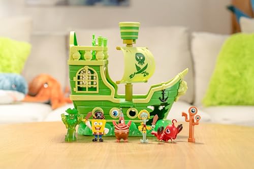 El set incluye seis figuras exclusivas de la película: Bob Esponja, Patricio, Calamardo, dos criaturas marinas y una figura translúcida del Holandés Volador que brilla con un resplandor fantasmal. Estas figuras no solo permiten recrear escenas inolvidables, sino que también invitan a inventar nuevas historias, promoviendo el juego simbólico y la coordinación. La figura del Holandés Volador, en particular, es un espectáculo visual cuando se coloca en el puesto de vigía, recreando uno de los momentos más impactantes del film.