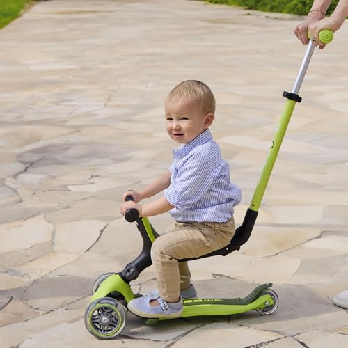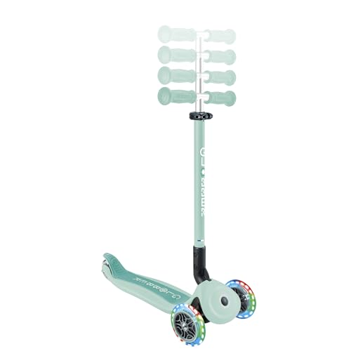 El patinete Globber Go Up Active luces Menta es un modelo evolutivo que se transforma para acompañar a tus hijos desde los 15 meses hasta los 6 años, soportando hasta 50 kg.
