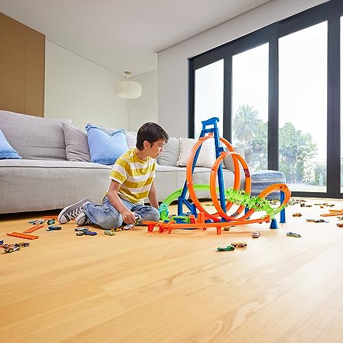 Descubre la emoción con la Pista de Choque Épico Hot Wheels, una experiencia única con cinco zonas de choque, dos loopings y un propulsor motorizado. Compatible con otros sets para diversión sin fin.