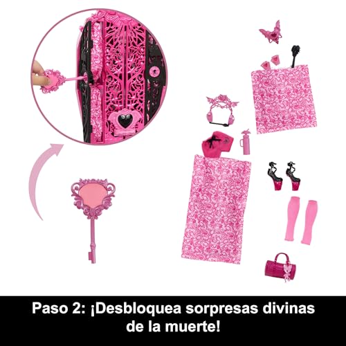 Descubre el misterio con la muñeca Monster High Skulltimate Secrets Draculaura, que incluye más de 19 accesorios sorpresa y un armario espeluznante.