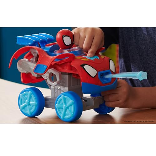 Descubre la diversión con el Toy Partner – Vehículo Spidey Mech Web Crawler, un coche transformador 2 en 1 con figura de Spidey y dardo web.
