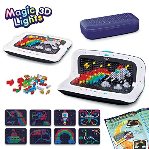 El VTech Magic Lights 3D es un juguete artístico y creativo para niños mayores de 4 años que permite crear obras de arte en 2D y 3D con luz y sonido. Incluye 180 pines en seis colores y tres formas, fomentando la creatividad y el desarrollo motor.